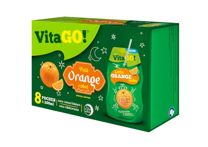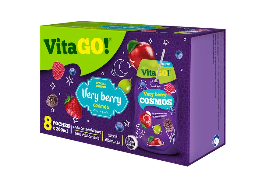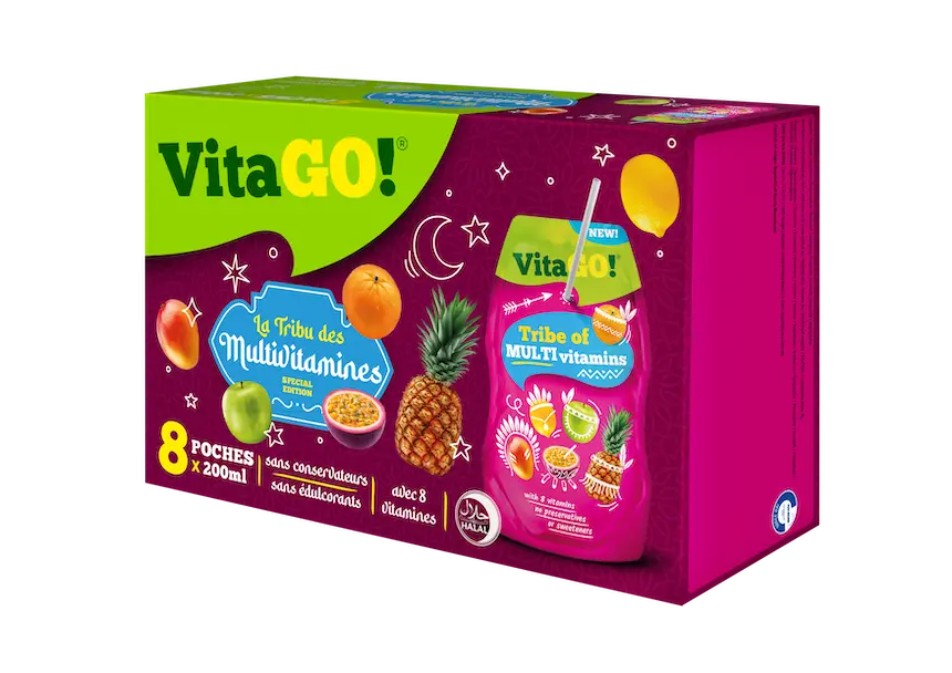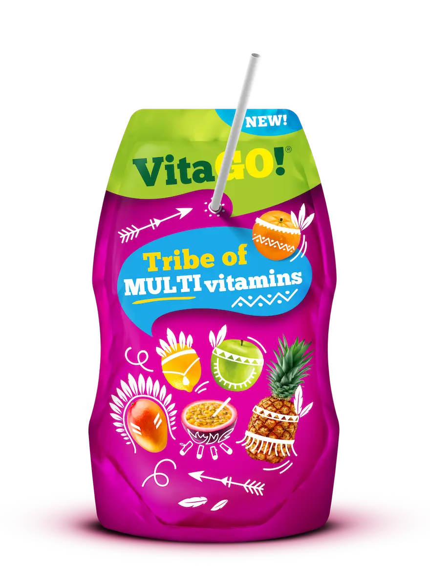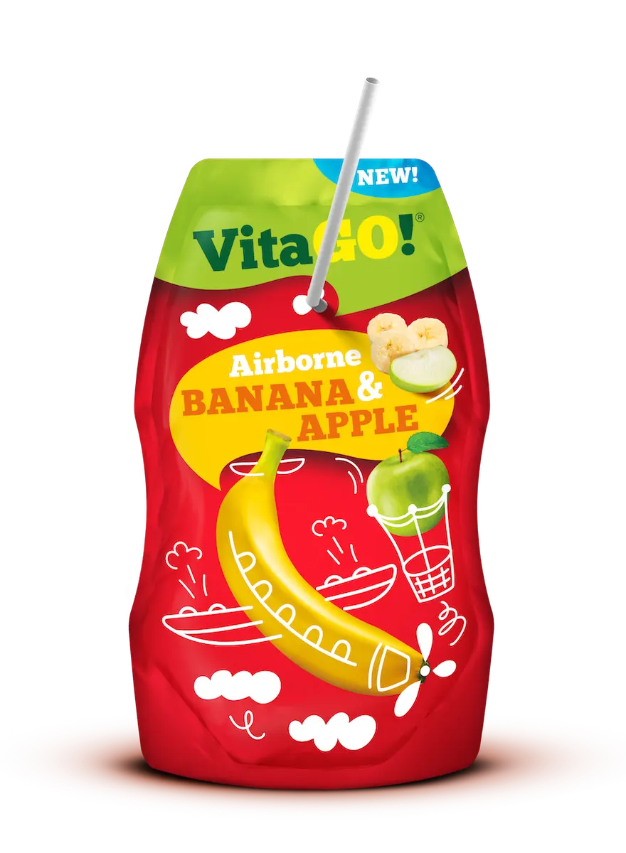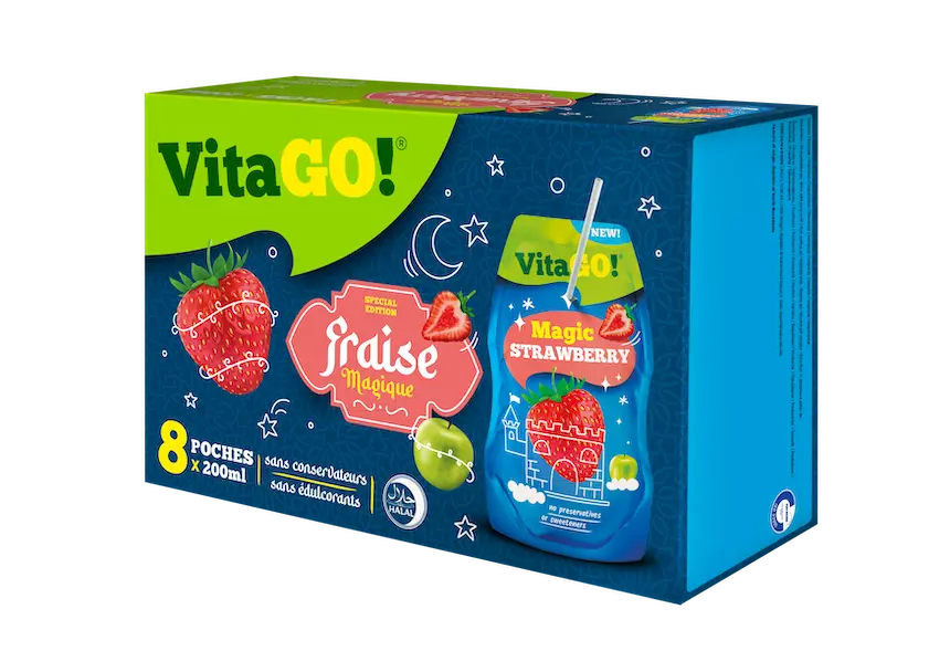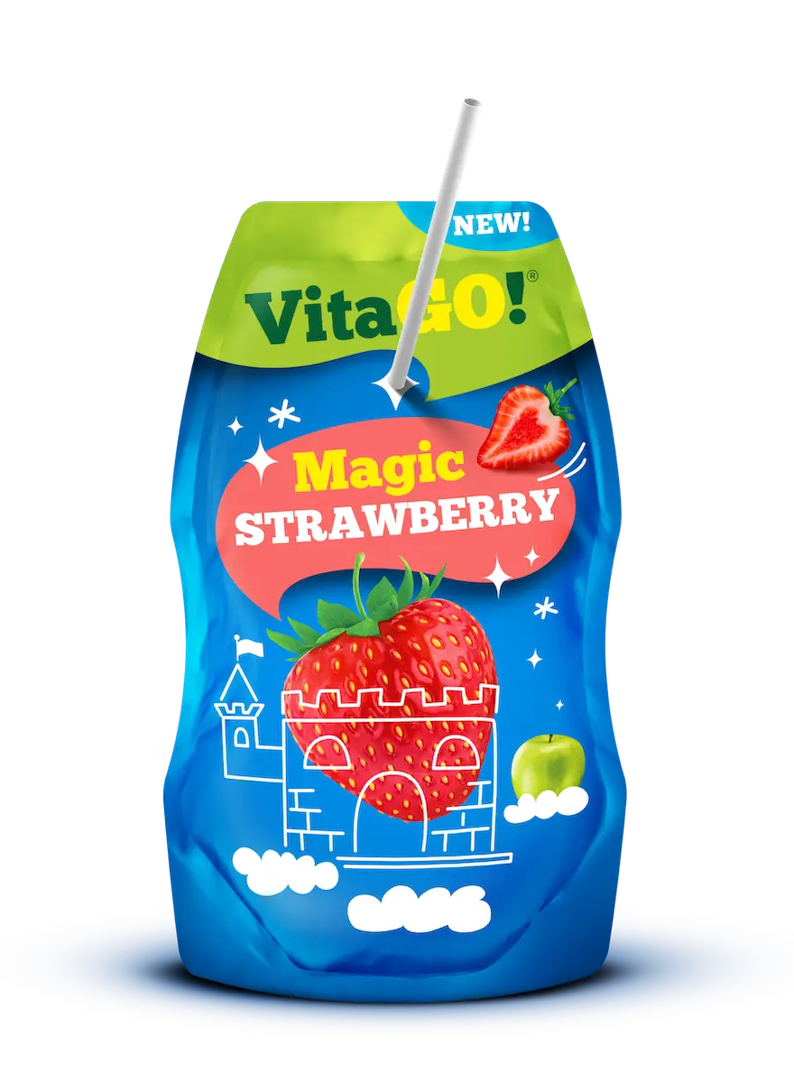 These beverages, made without preservatives or sweeteners, are available in tantalizing strawberry, banana & apple, orange, multivitamin and other flavors. Packaged in sleek stand-up pouches in an unique, curved design, they perfectly capture life in motion - Vita and GO. Each serving brings joy, youthfulness, and vitality, making them ideal for school, picnics, and everyday refreshment.
